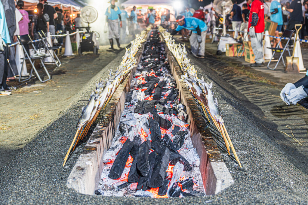 2024年8月24日(土)魚野川鮎まるかじり祭が開催されます。魚野川河川敷に全長20mの焼き場が出現!?鮎を炭火焼きでまるかじり!ステージパフォーマンスや屋台など出店あり!