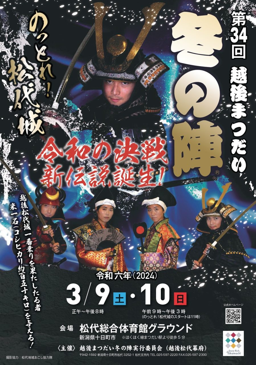 ●日時 3月9日(土)・10日(日) ●会場 松代総合体育館グラウンド ●冬の陣とは? 冬将軍から松代城を奪い返し、暖かい春を呼び込む「越後まつだい冬の陣」。豪...