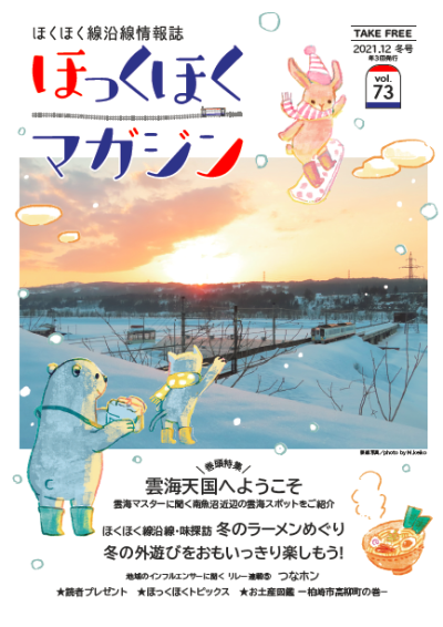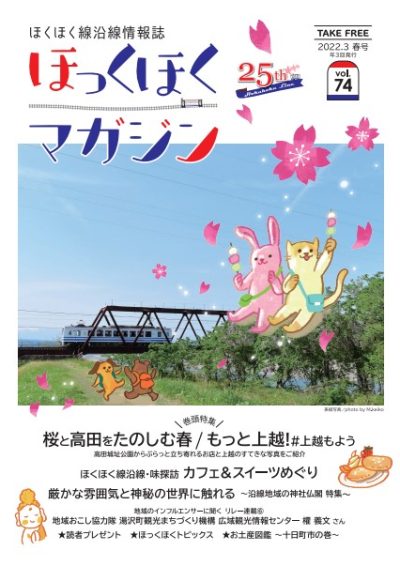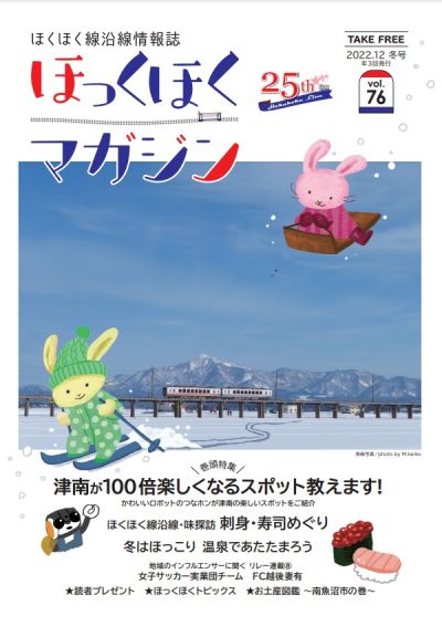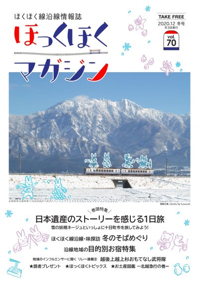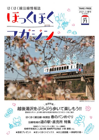 ほくほく線沿線情報誌「ほっくほくマガジン」は春・夏秋・冬の年3回発行しています。「 ほっくほくマガジン」では、毎号組まれる旬な特集を中心に、沿線の見どころやグルメスポットなどを紹介しています。