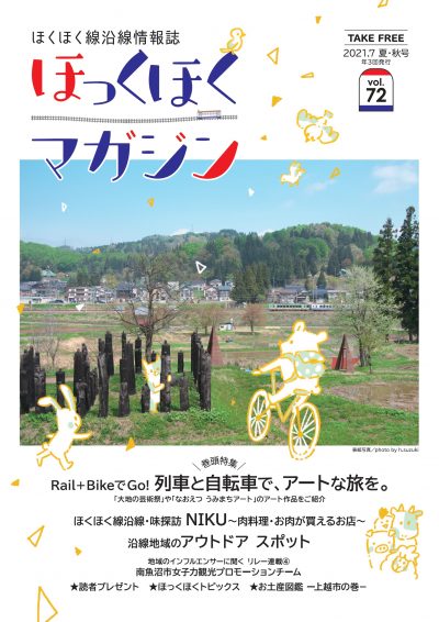 列車と自転車で、アートな旅 「大地の芸術祭」「なおえつ うみまちアート」の作品紹介 ほくほく線沿線・味探訪 肉特集 沿線地域のアウトドアスポット特集