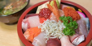 目利きの店主が毎日市場で仕入れてくる新鮮な海の幸が味わえる刺身やお寿司が大人気。中でも生ちらしやにぎり寿司とうどんのセットがある限定30食…