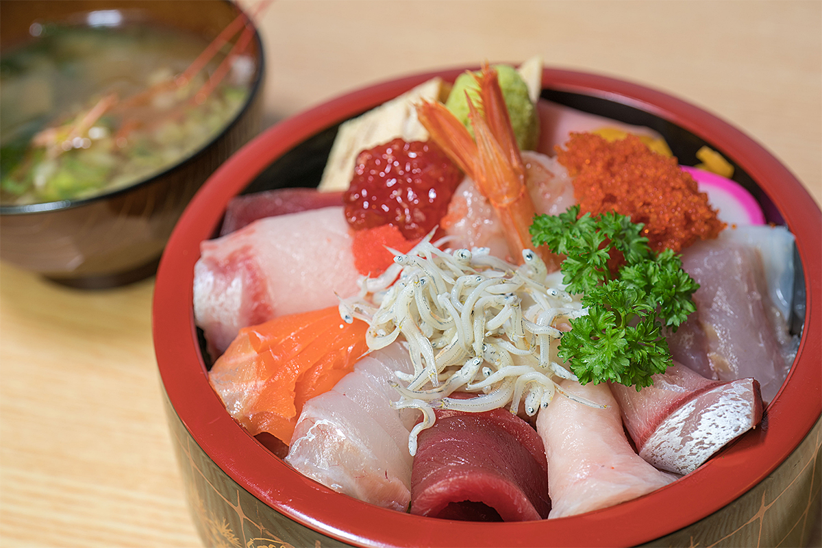 目利きの店主が毎日市場で仕入れてくる新鮮な海の幸が味わえる刺身やお寿司が大人気。中でも生ちらしやにぎり寿司とうどんのセットがある限定30食のサービスランチは860円とリーズナブルでボリューム満点。夜は鮮魚だけでなく居酒屋メニューもあり、それぞれの料理にあう地酒(日本酒を中心に20種類以上)がズラリと並ぶ。