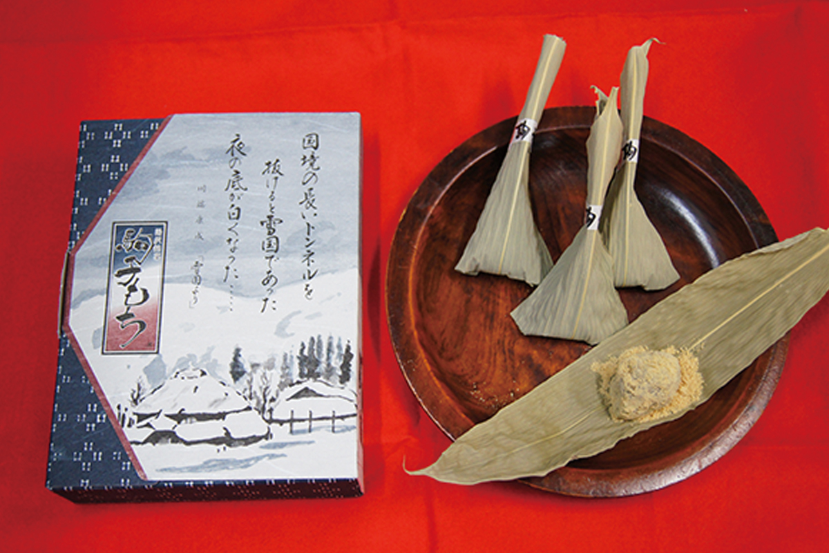 昭和45年創業の和菓子屋。湯沢銘菓「駒子もち」の製造元。越後平野の良質なもち米を主原料として、ひとつひとつ丹精込めて作られた「駒子もち」の舌ざわりは雪国のもち肌のように柔らかい。包装に用いられた笹の葉は深山の香りがほのかに漂い、お座敷に上がる雪国の芸者さんたちが羽織る角巻をイメージしたそう。