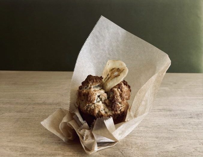 卵と乳製品不使用の旬果のマクロビマフィンざっくりと滋味深いあじわいです。