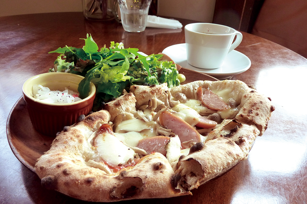 オシャレな店内はオープンするとすぐに地元のお客様でいっぱいに! 薪窯で焼かれるピザは、全粒粉を使用したもちもちの生地に自家栽培の季節野菜や自家製リコッタチーズなどがトッピングされ、やみつきになる美味しさです。