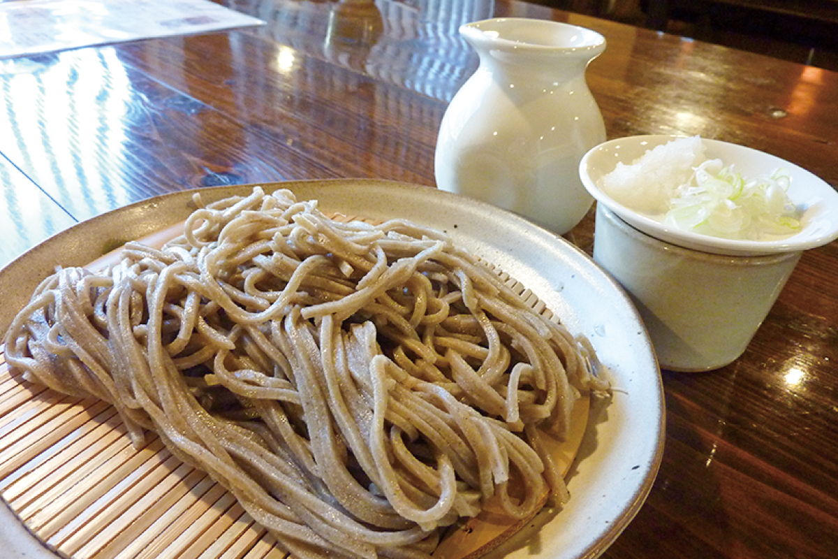 重厚な梁がむき出しにされた店内で、一人ひとりの食事に真心を込める手打ちそばなどの食事を提供している。天ぷらに使用する野菜類は地元産を使用するなど素材にこだわり、評価の高い一杯とくつろぎの時間が味わえる。自家製粉のそば粉100%を使用した「石臼挽き十割そば(950円)」や皮に近い黒い部分の荒挽き粉を使い、たっぷり1.5人前盛りの「雪むろ田舎そば(1,450円)が人気。